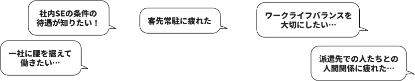 開発、インフラ系のエンジニアはもちろん、データサイエンティストやセキュリティ系、情報システムやIT企画といった社内SE、ITコンサルタントなど幅広い職種の経験者にご登録頂いています。
